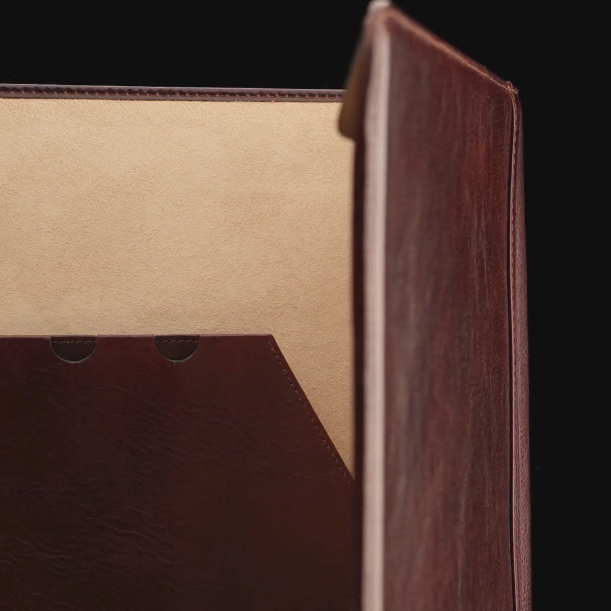 Whether you're preparing paperwork for a high-stakes presentation or safeguarding your tablet for a crucial meeting, this portfolio ensures that you're always prepared to make a lasting impression. Nestled within its sleek exterior is a spacious interior, lined with gentle material that cradles your devices and papers, protecting them from scratches and damage. With multiple pen loops and thoughtful card slots, every detail is carefully considered to streamline your workflow and elevate your organizational prowess. Elevate your professional persona with our Leather Portfolio—the epitome of functionality, and ambition.