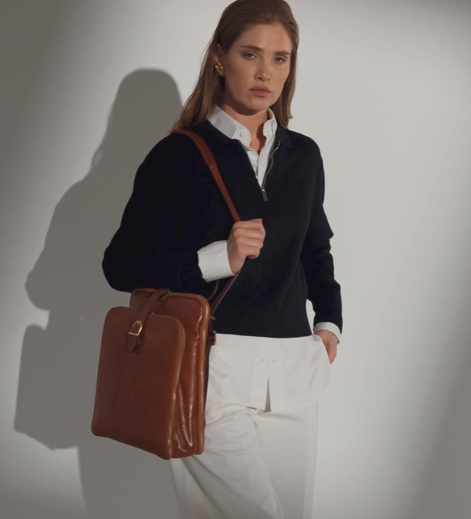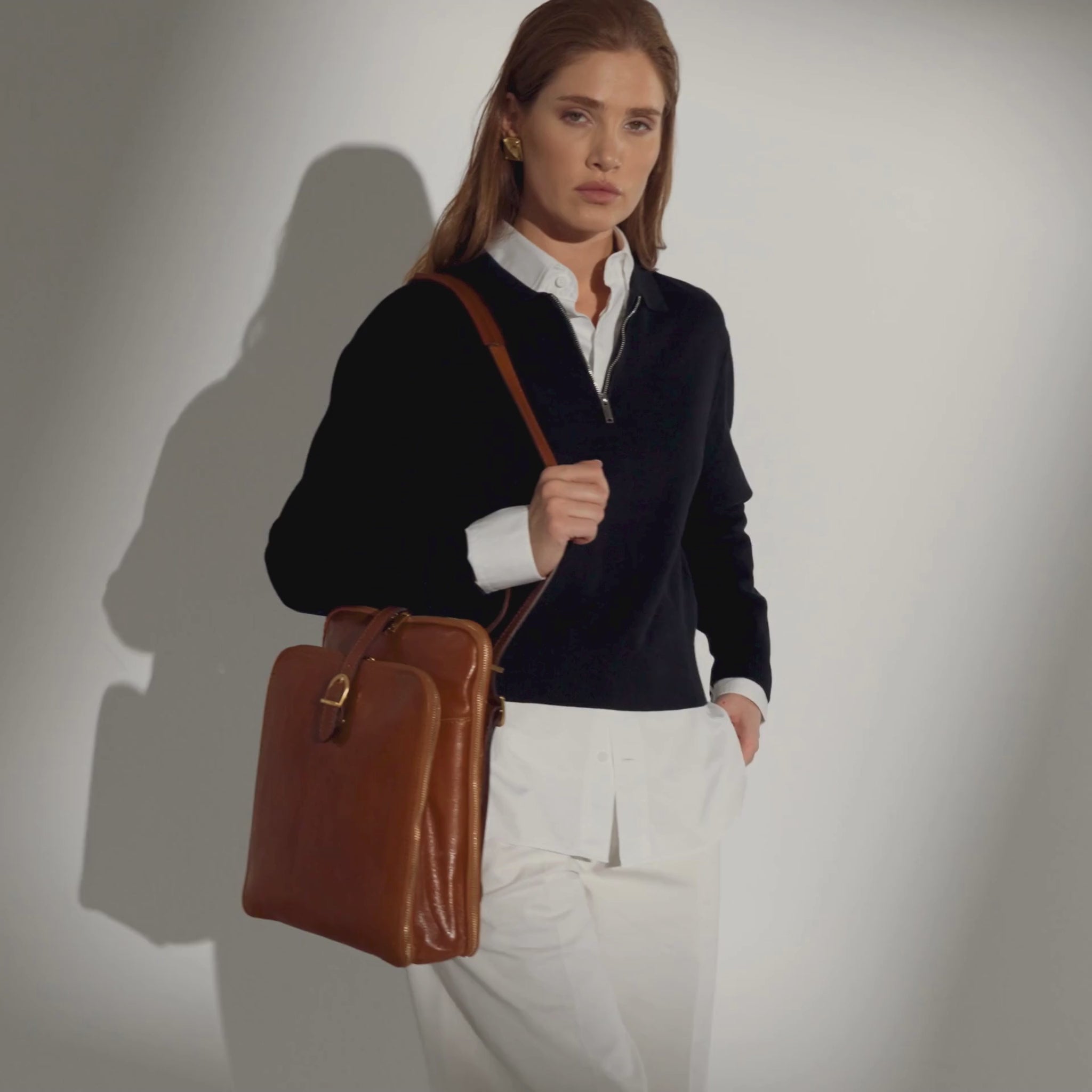 Women’s full-grain leather backpack that has absolutely nothing to do with activewear. In fact, throw away every thought you’ve ever had about backpacks. This accessory is for an elegant, polished lady with an innovative attitude. Innovation often comes from reinventing the classics and Clarissa is a sharp looking backpack that combines business with personality. It will never be surrounded by 20 identical clones. Moreover, the backpack easily converts to a shoulder bag with the simple pull of the straps.