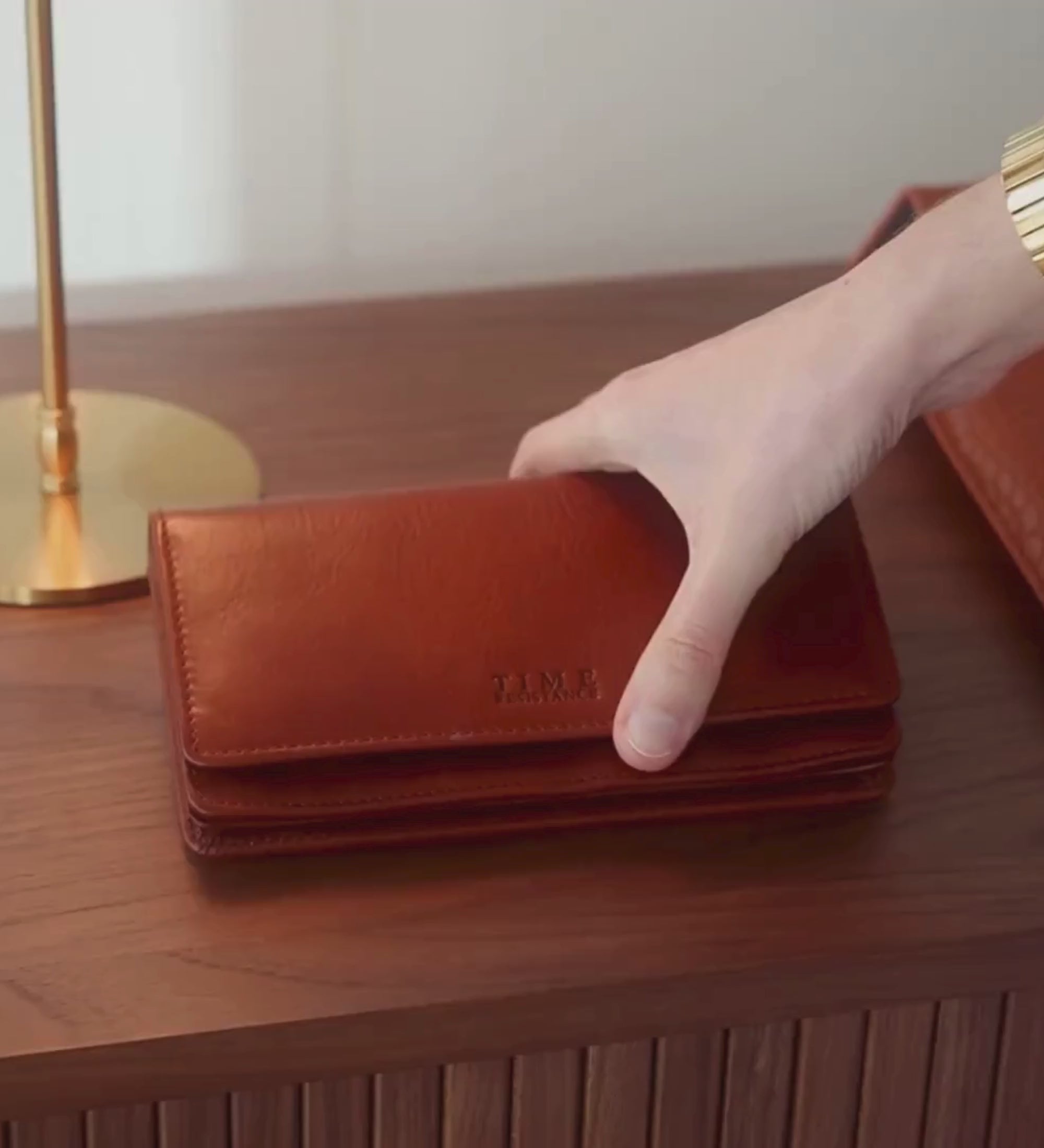 Charade is for those who believe a wallet should be as considered as everything else they carry. Sleek, and quietly commanding, this continental wallet holds your essentials within a structured silhouette designed for order and ease. Crafted from full-grain Vachetta cowhide that softens and deepens with time, it opens to a refined jacquard interior and secures with a clean snap closure. Everything in its place. Nothing out of order.