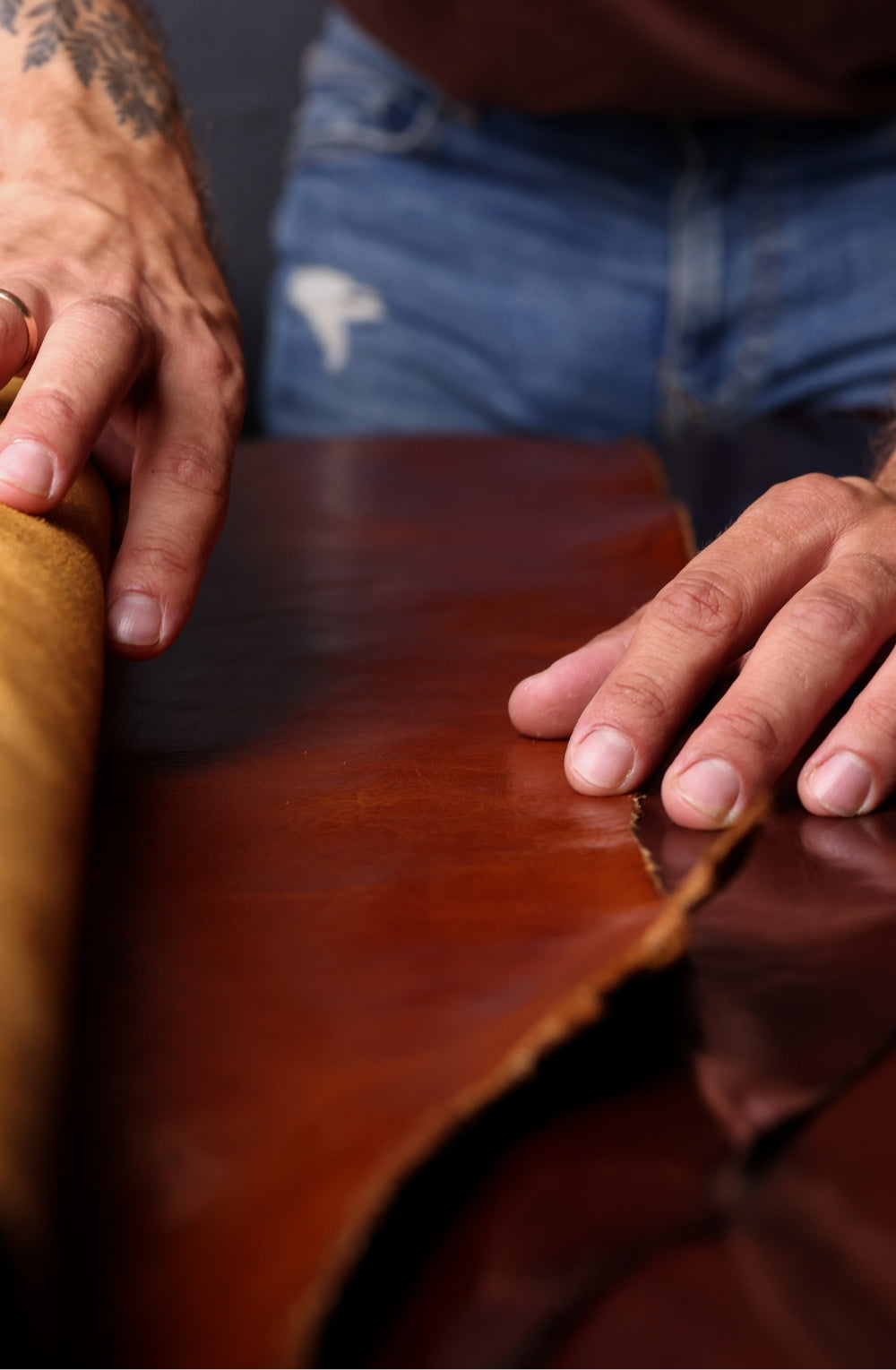 The artisanal tanning technique used in our process highlights the natural beauty of the leather. Small veins, wrinkles, and imperceptible scratches may be present, proving the leather's authenticity and rendering each piece truly unique. Additionally, vegetable tanning imparts a natural earthy smell to the leather, enhancing its distinctiveness.