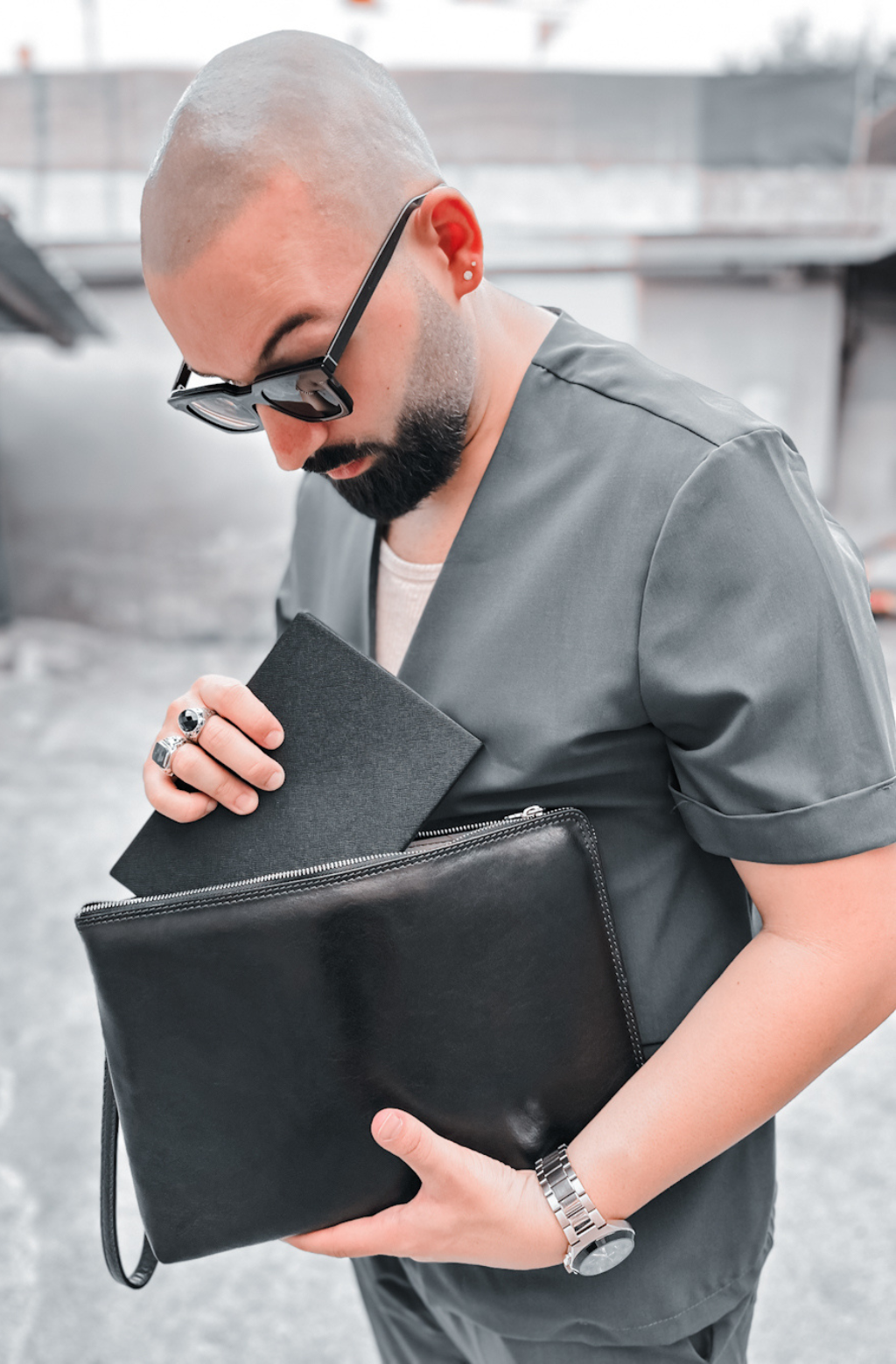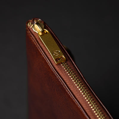 Time Resistance bags and accessories are crafted from premium full-grain, hand-dyed, vegetable-tanned Italian cowhide, known as Vachetta leather, which develops a beautiful patina and ages gracefully over time.