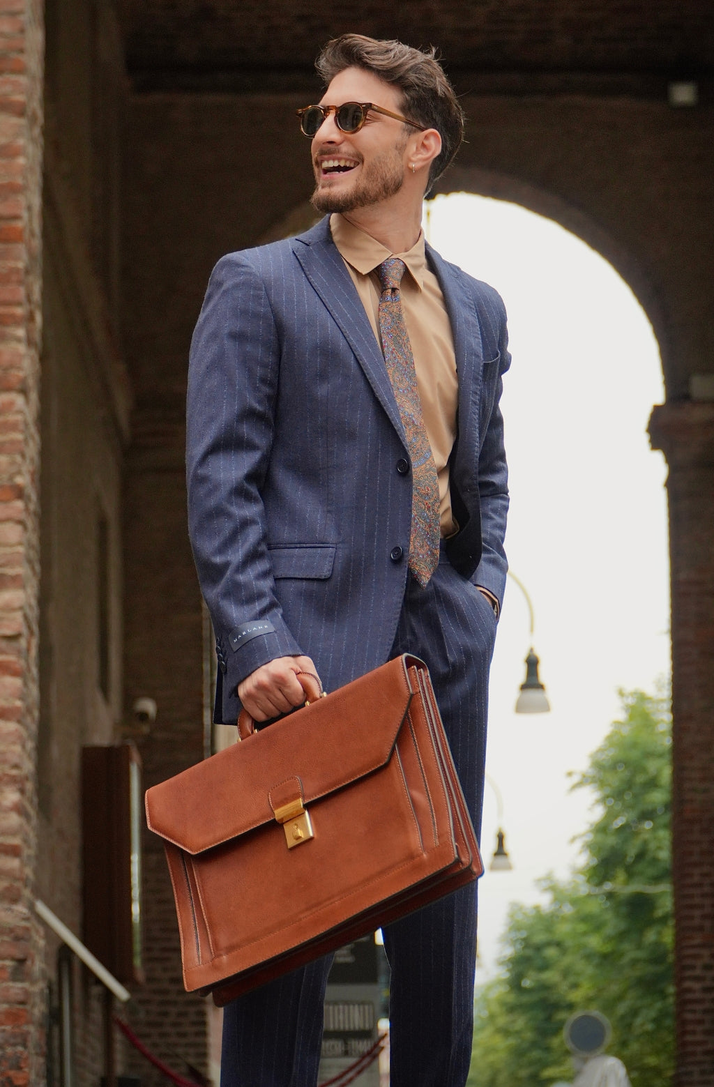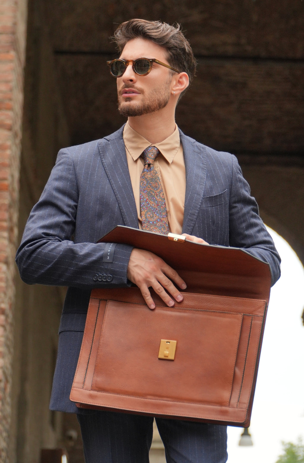 A timeless classic with multiple personalities. This large genuine leather briefcase is an accessory that will complement every look. Today, will you be a foreign diplomat or a fine arts student? Pair with imagination.
