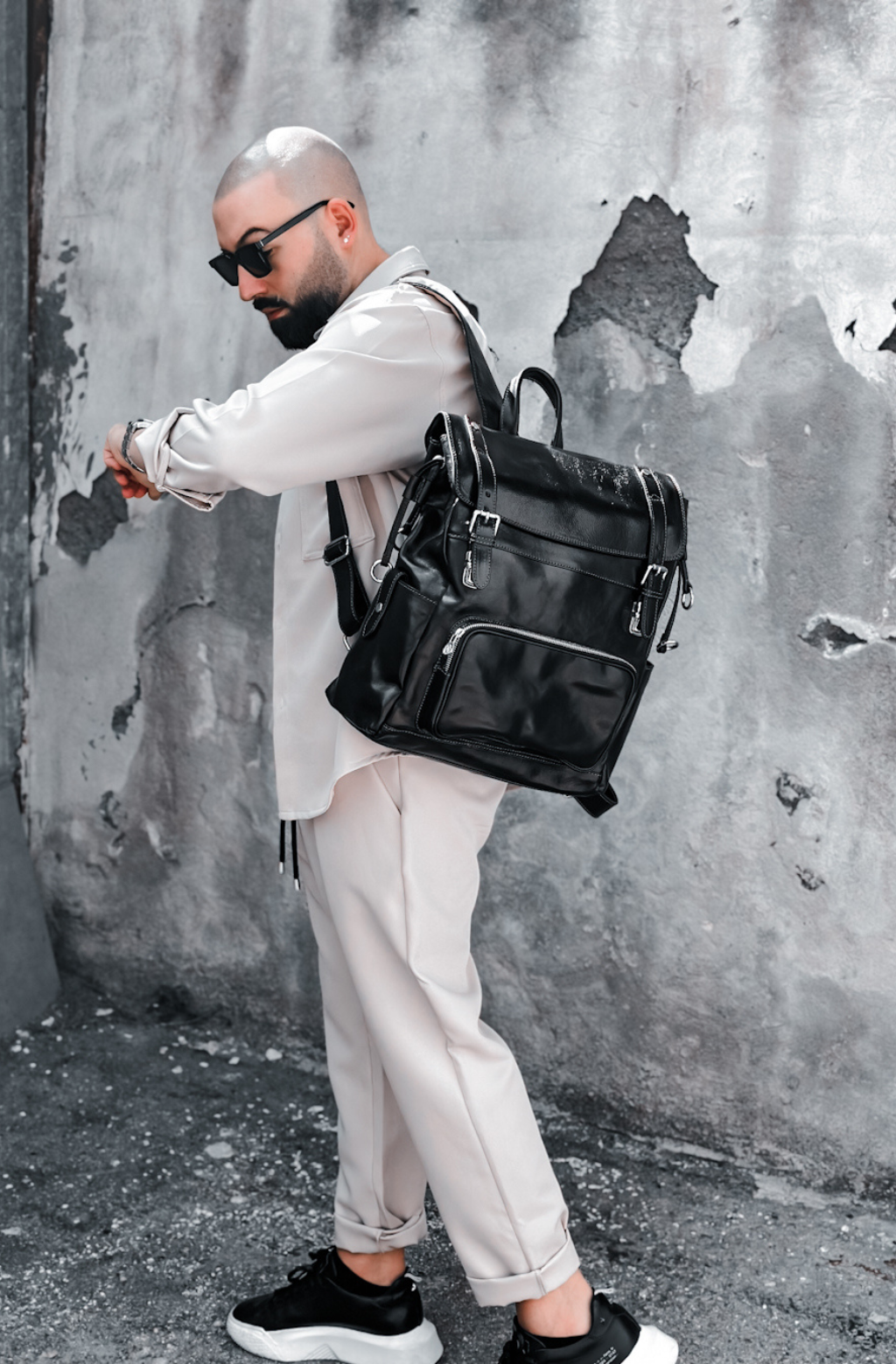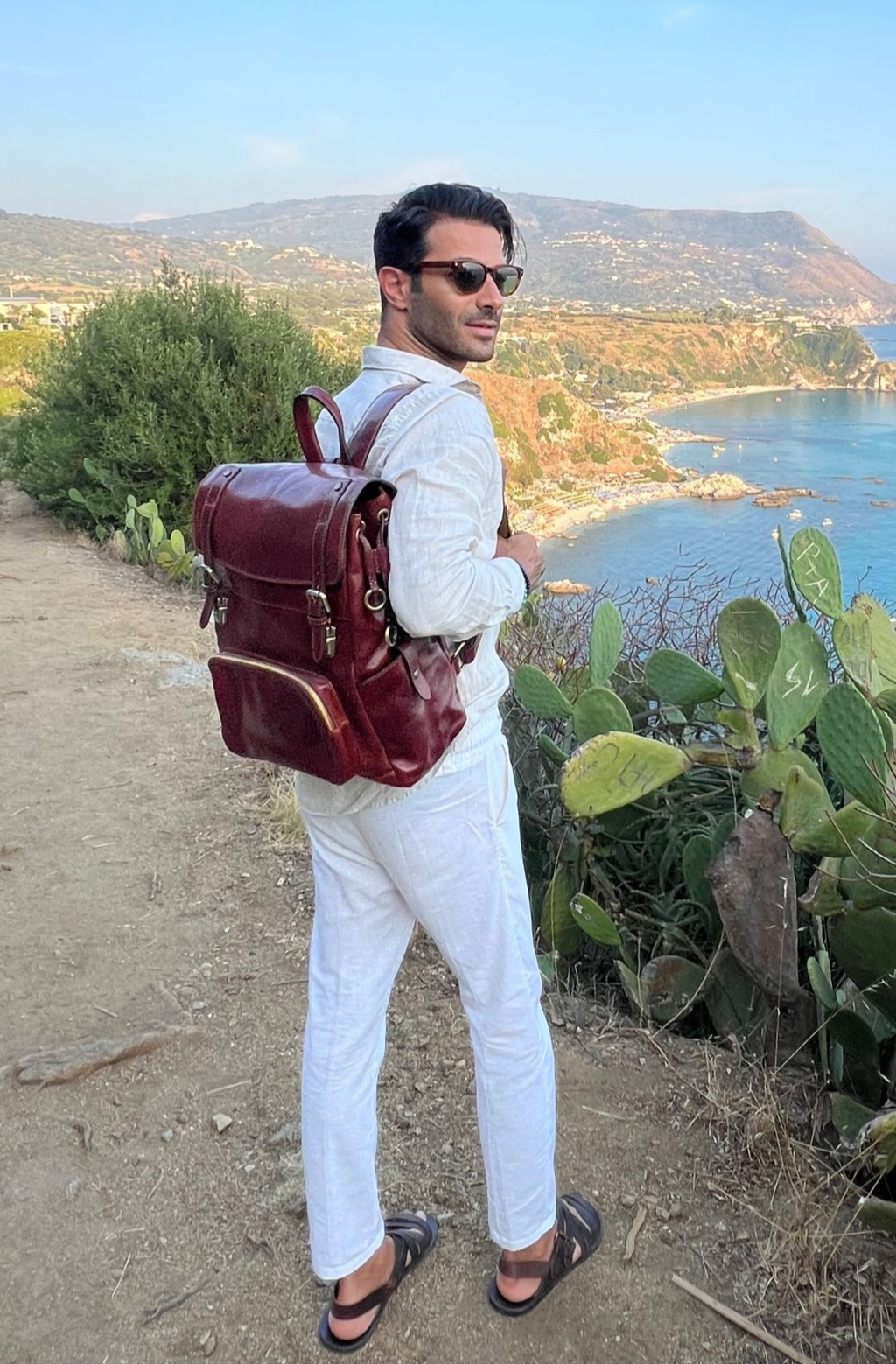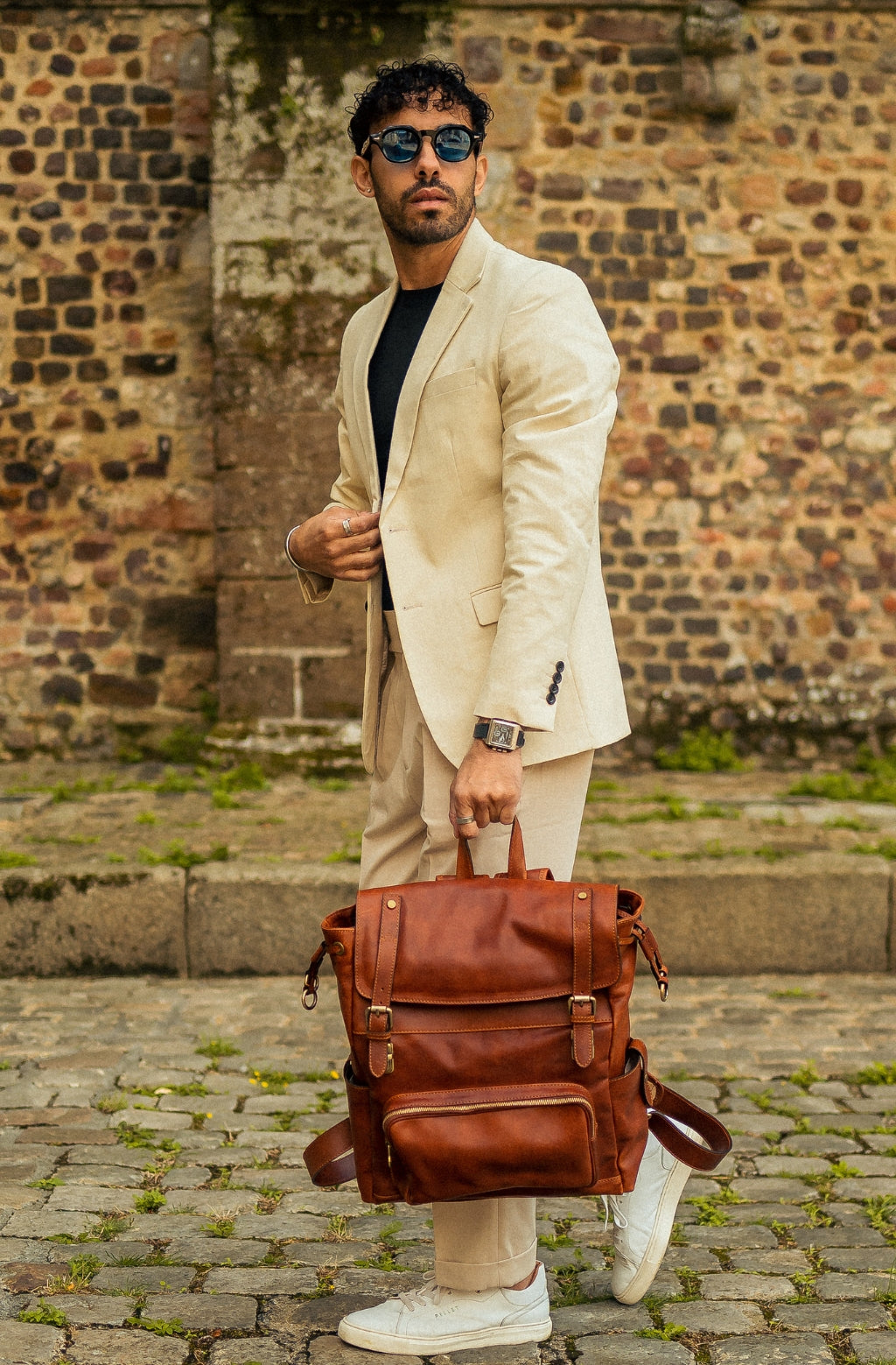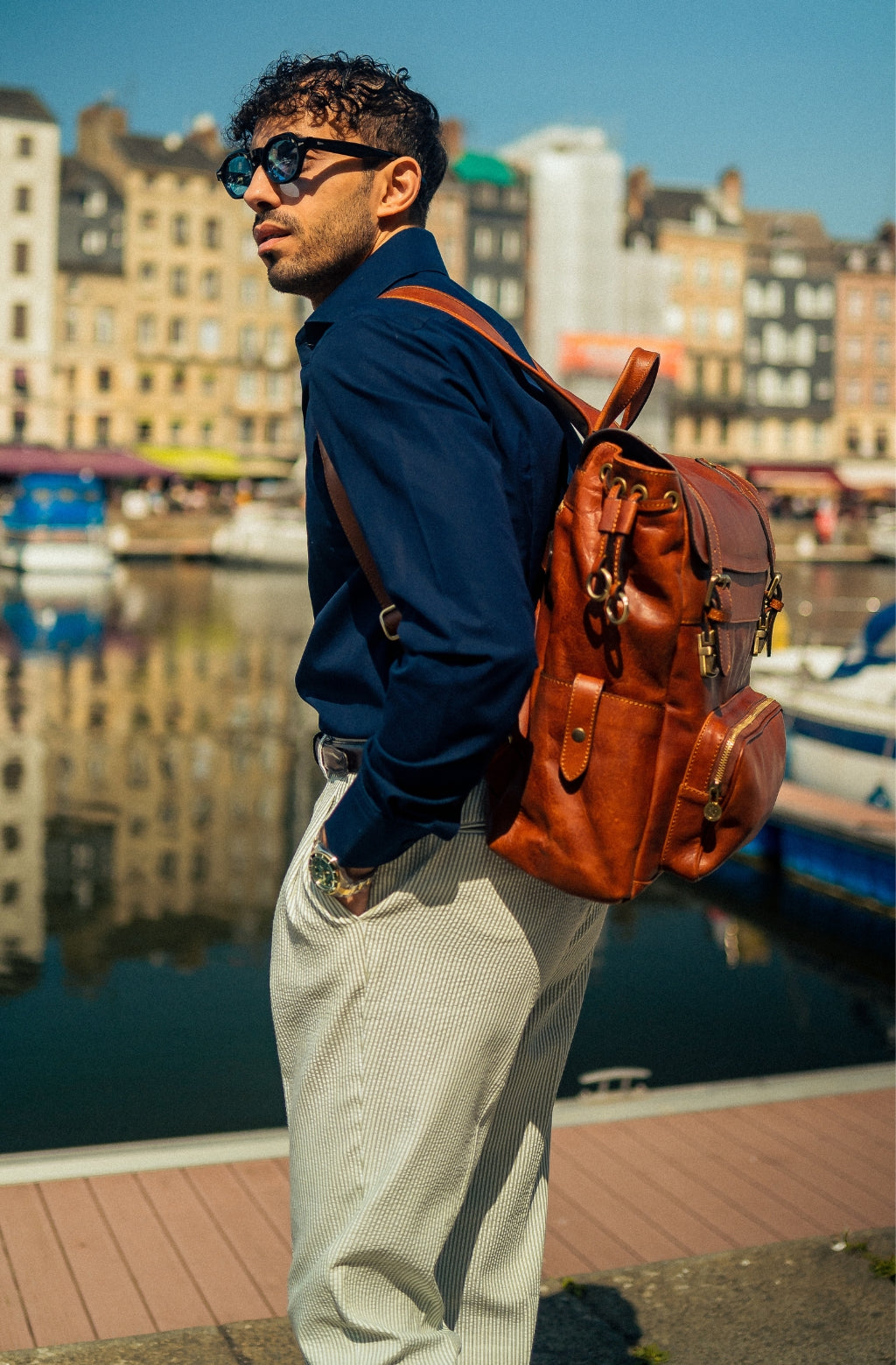 A rustic style Italian leather backpack The Good Earth is for a stylish traveler. So spacious it fits all the essentials of a backpacker and then some. Designed in Italy this full-grain leather backpack ensures maximum security of your belongings with two push-button closures and a working key and a zipped pocket right at your back. Time Resistance premium quality leather backpack is a perfect marriage between practicality, comfort, and luxury.