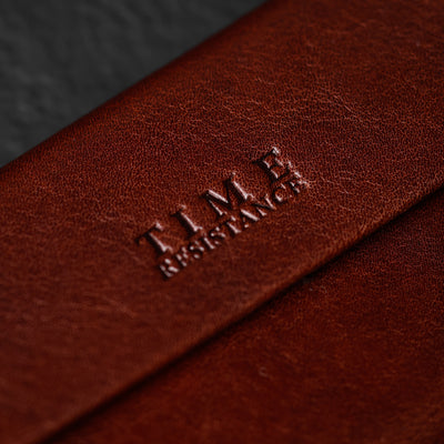 Time Resistance bags and accessories are crafted from premium full-grain, hand-dyed, vegetable-tanned Italian cowhide, known as Vachetta leather, which develops a beautiful patina and ages gracefully over time.