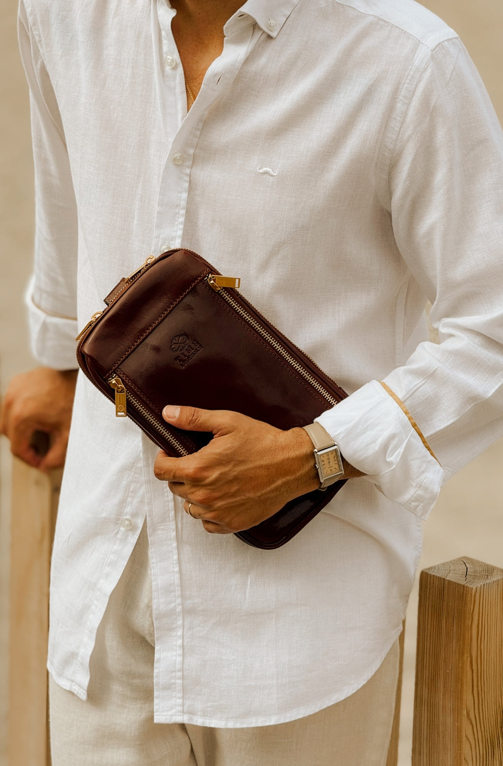 Time Resistance bags and accessories are crafted from premium full-grain, hand-dyed, vegetable-tanned Italian cowhide, known as Vachetta leather, which develops a beautiful patina and ages gracefully over time.