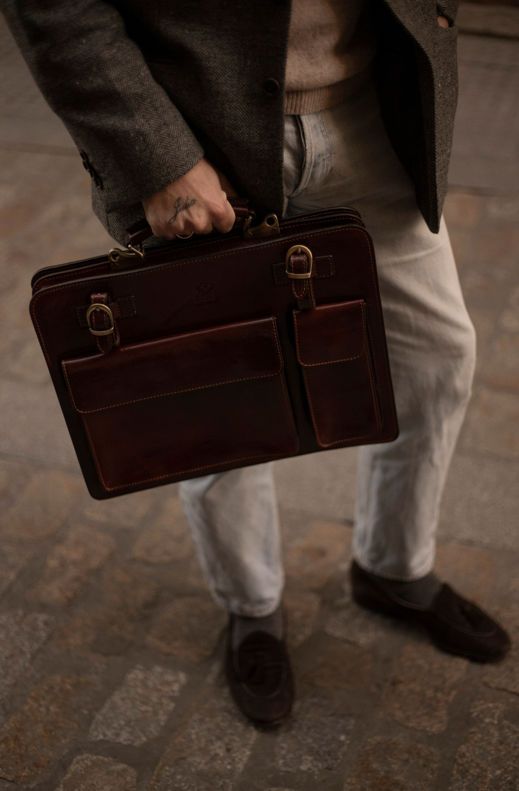 A full-grain leather work bag that gives a formal polish to casual attire. Pure classic – British design inspired by Italian leather satchels.