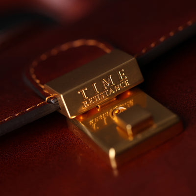Time Resistance bags and accessories are crafted from premium full-grain, hand-dyed, vegetable-tanned Italian cowhide, known as Vachetta leather, which develops a beautiful patina and ages gracefully over time.