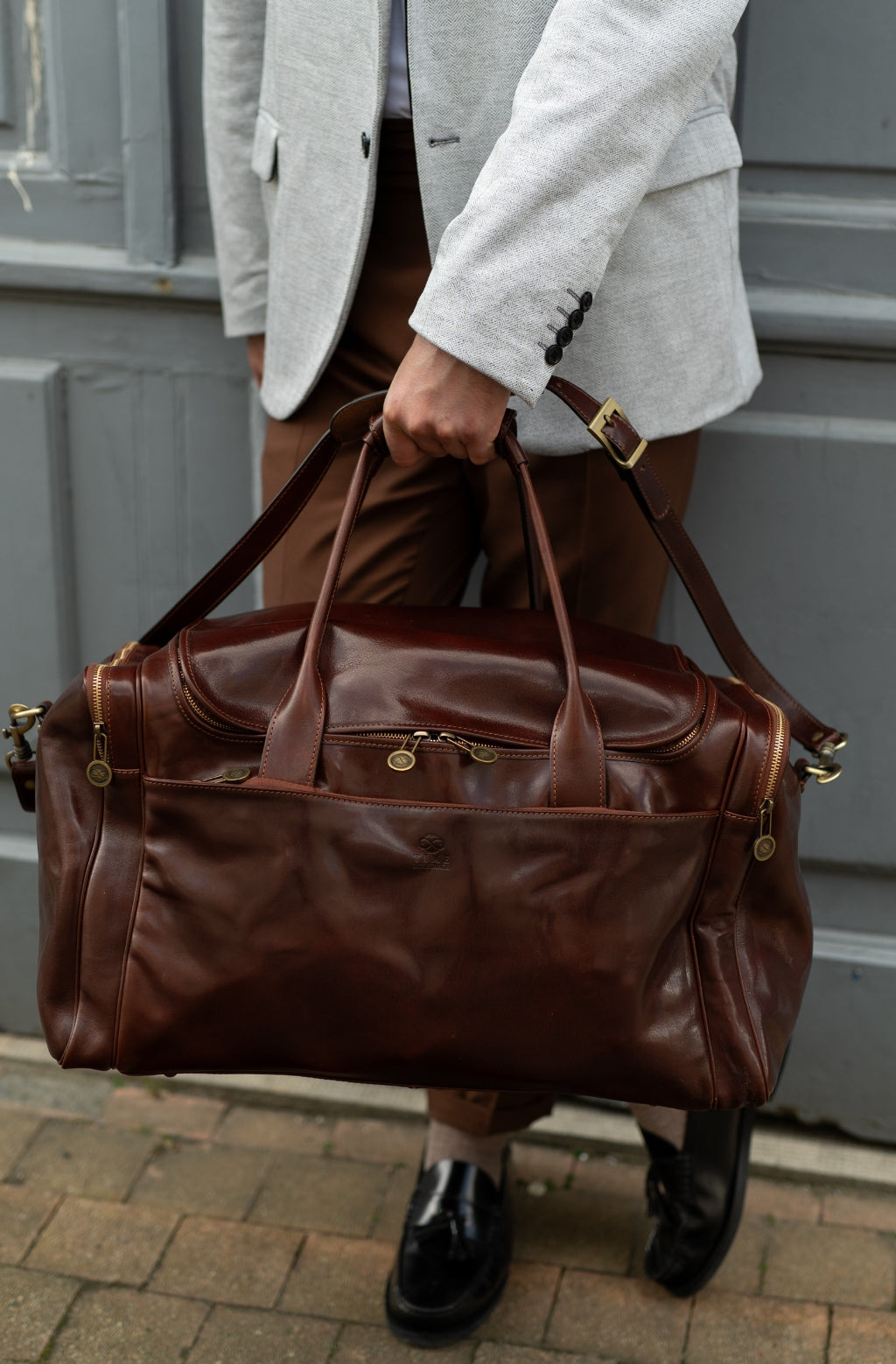 Large Italian Leather Duffel Bag - The Hitchhikers Guide to the Galaxy