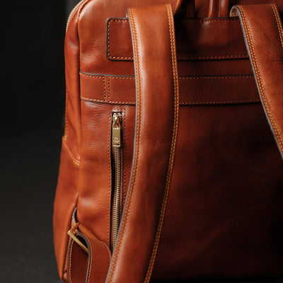 A full-grain leather backpack that is both stylish and practical, with its large capacity and well thought out details for comfort. Best choice for travelers, professionals, and students alike.