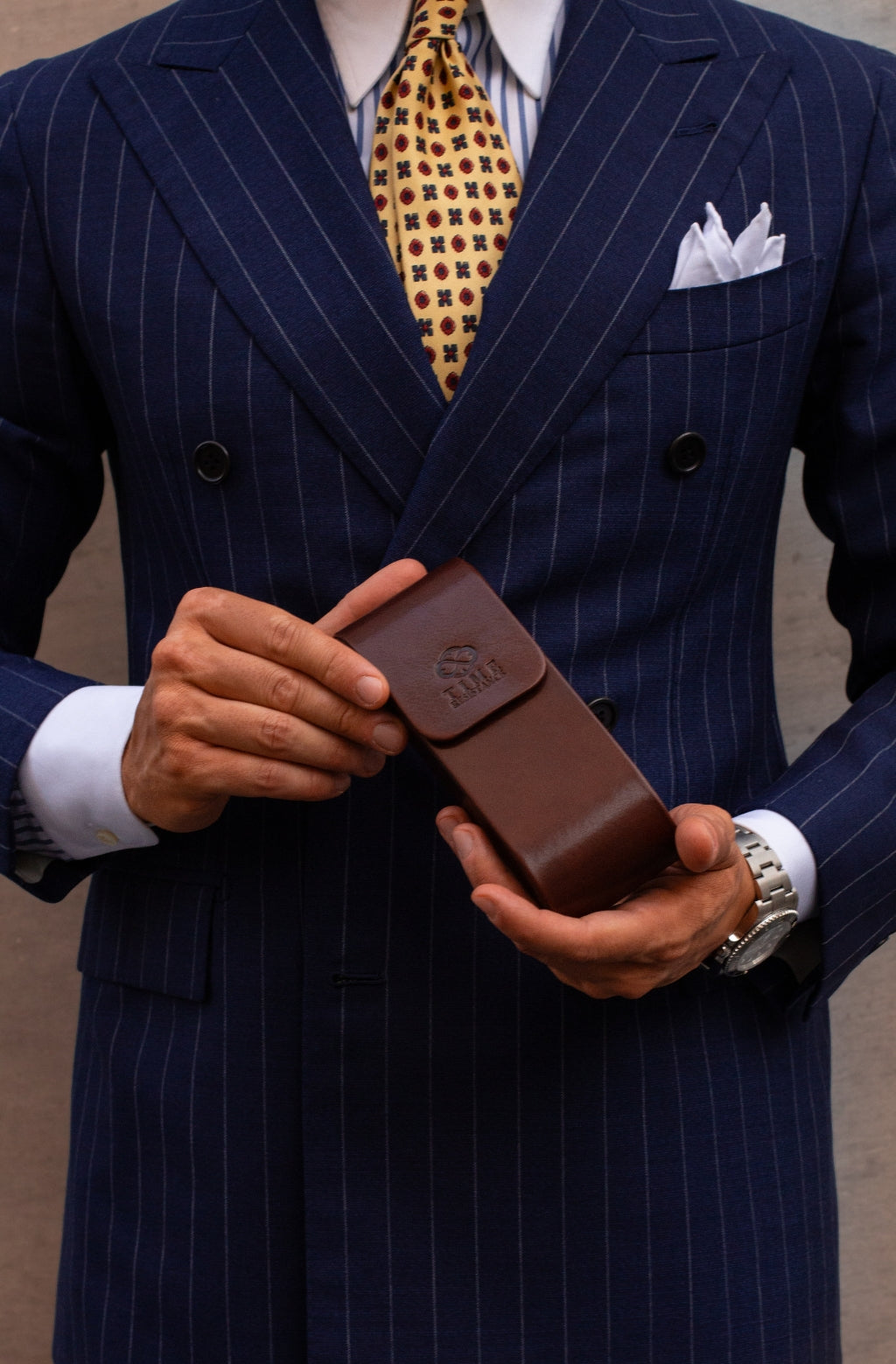 Hand dyeing is a slow, meticulous craft where every hide is colored by hand, layer by layer, using gentle circular motions. Instead of machines, it is the artisan’s touch that controls depth, warmth, and character. The dye is massaged into the grain, allowing the leather to breathe, absorb, and reveal its natural variations.