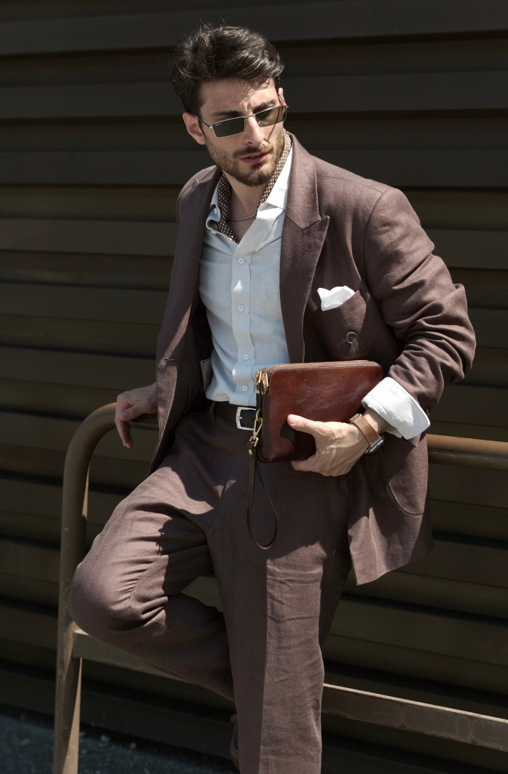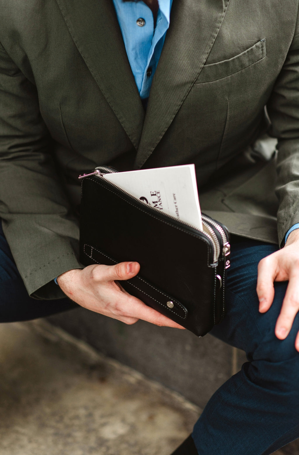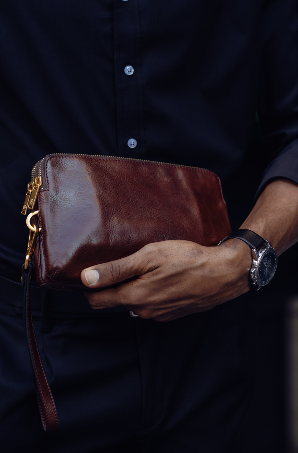A full-grain leather clutch for a modern man, who isn’t keen on carrying a shoulder bag, but has come to realize that the bulk of his wallet is getting out of control. This clutch wallet provides a more sophisticated alternative to packing your whole life to an overstuffed wallet and the pockets of your jacket. It will accommodate all of your daily essentials and look all business with a touch of sartorial elegance.