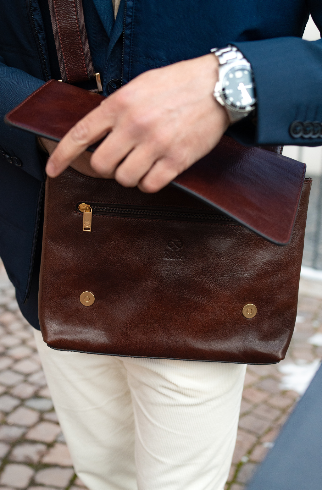 Time Resistance bags are crafted from premium full-grain, hand-dyed, vegetable-tanned Italian cowhide, known as Vachetta leather, which develops a beautiful patina.