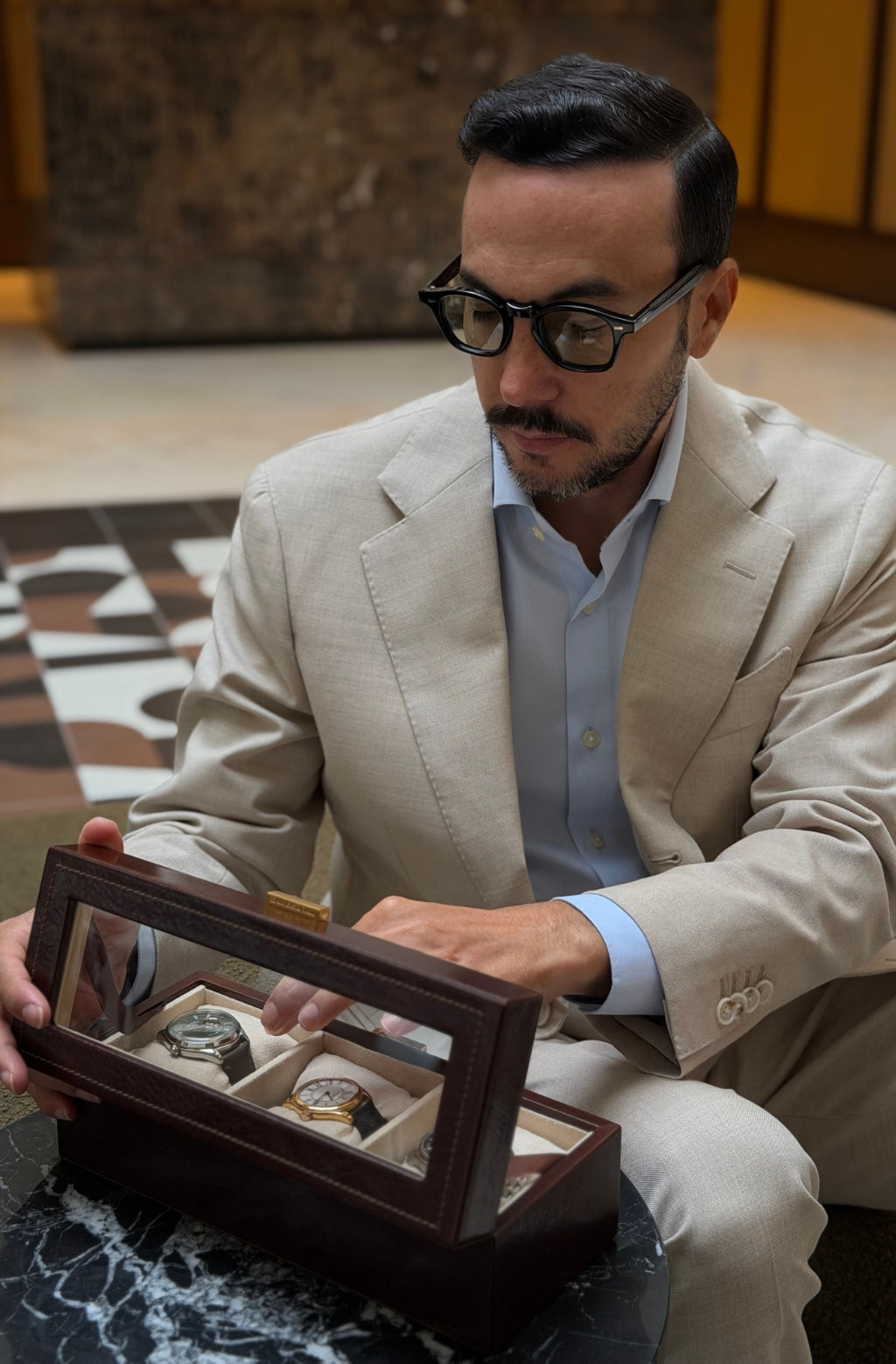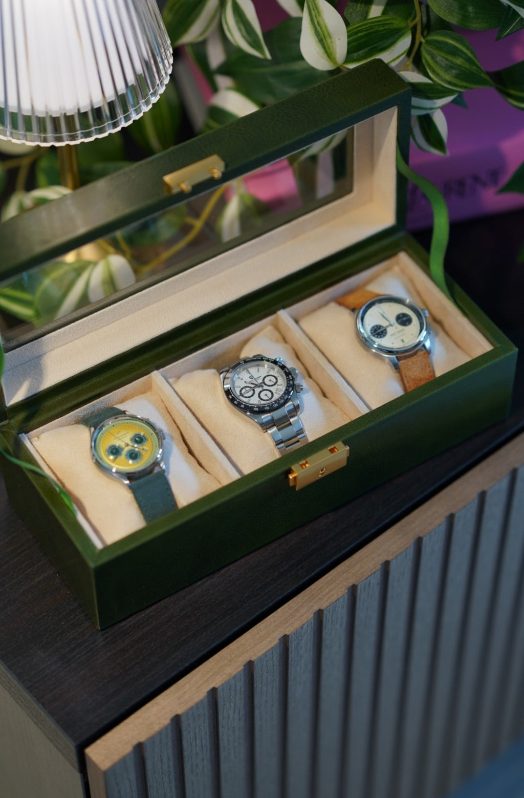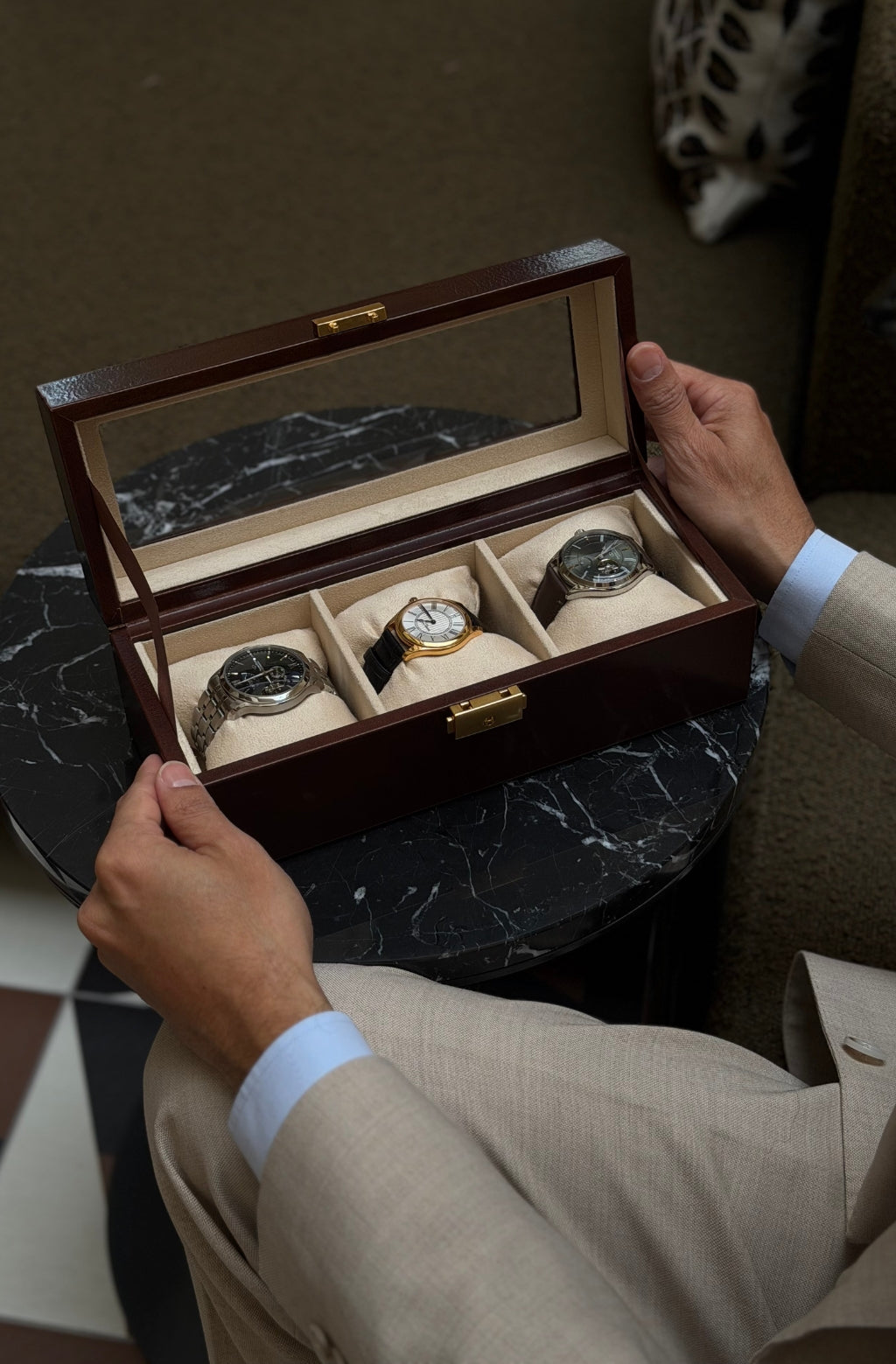 A tribute to quiet luxury, Silence is designed for those who understand the power of presence without noise. Crafted from full-grain leather, it offers an elegant home for your most personal timepieces - objects that mark moments, stories, and memories. With a clear top that offers a contemplative glimpse within, Silence invites appreciation without intrusion. Every detail is shaped by intention - structured, secure, and enduring.