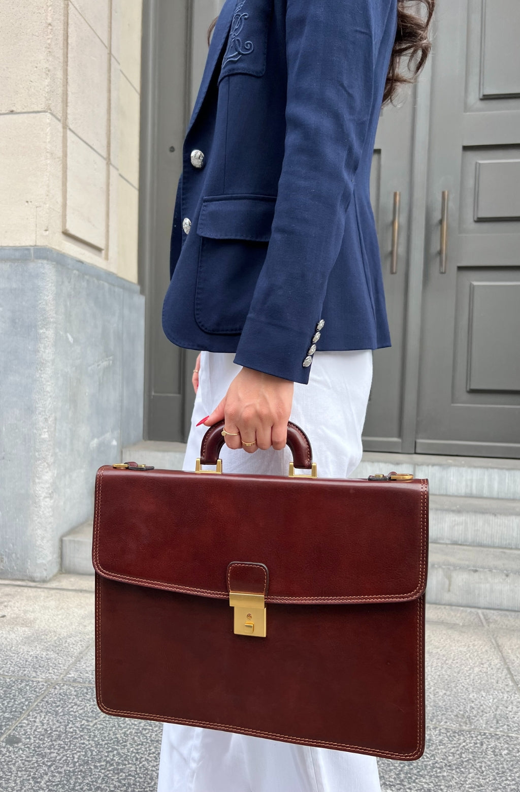 A leather briefcase that is classic but unassuming. For when you haven’t yet decided what kind of character you are going to play in life. It goes with everything, allowing you full freedom to be one person today and the complete opposite tomorrow: a suit or a beanie? Both? Does anyone do both? No? Should you be the first? Complemented by imagination.